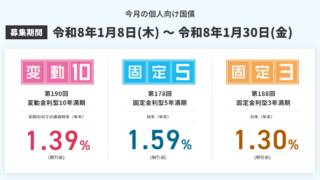 | 表面利率(年) (税引き後) | 2.1% (1.673385%) | 2月18日発表予定 | 1.3% (1.035905%) |