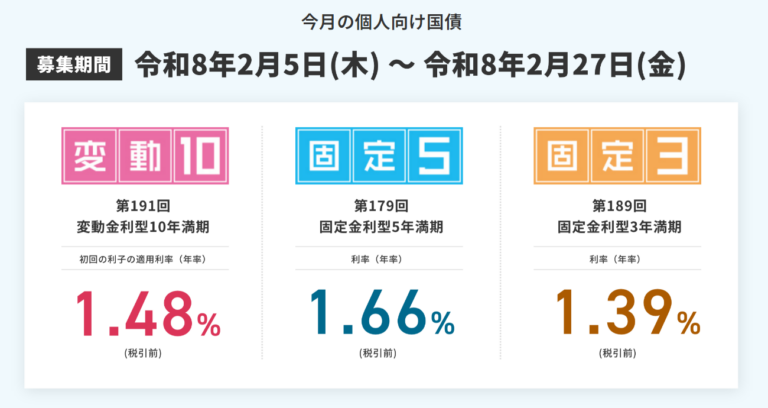 【追加情報】新窓販国債の最新情報(令和8年2月募集)