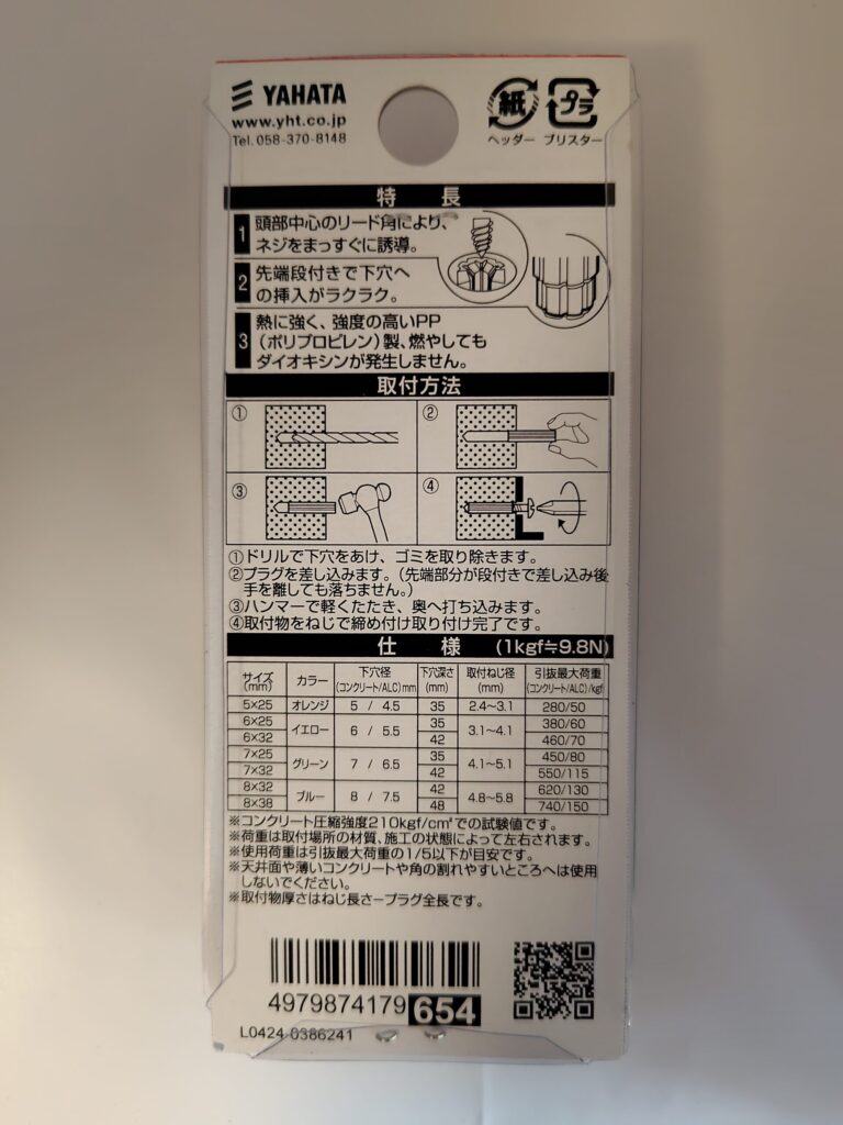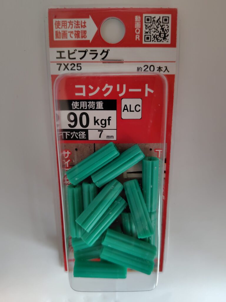 - エビプラグ 7×25:4本 (200円・20本入り、ホームセンター等)